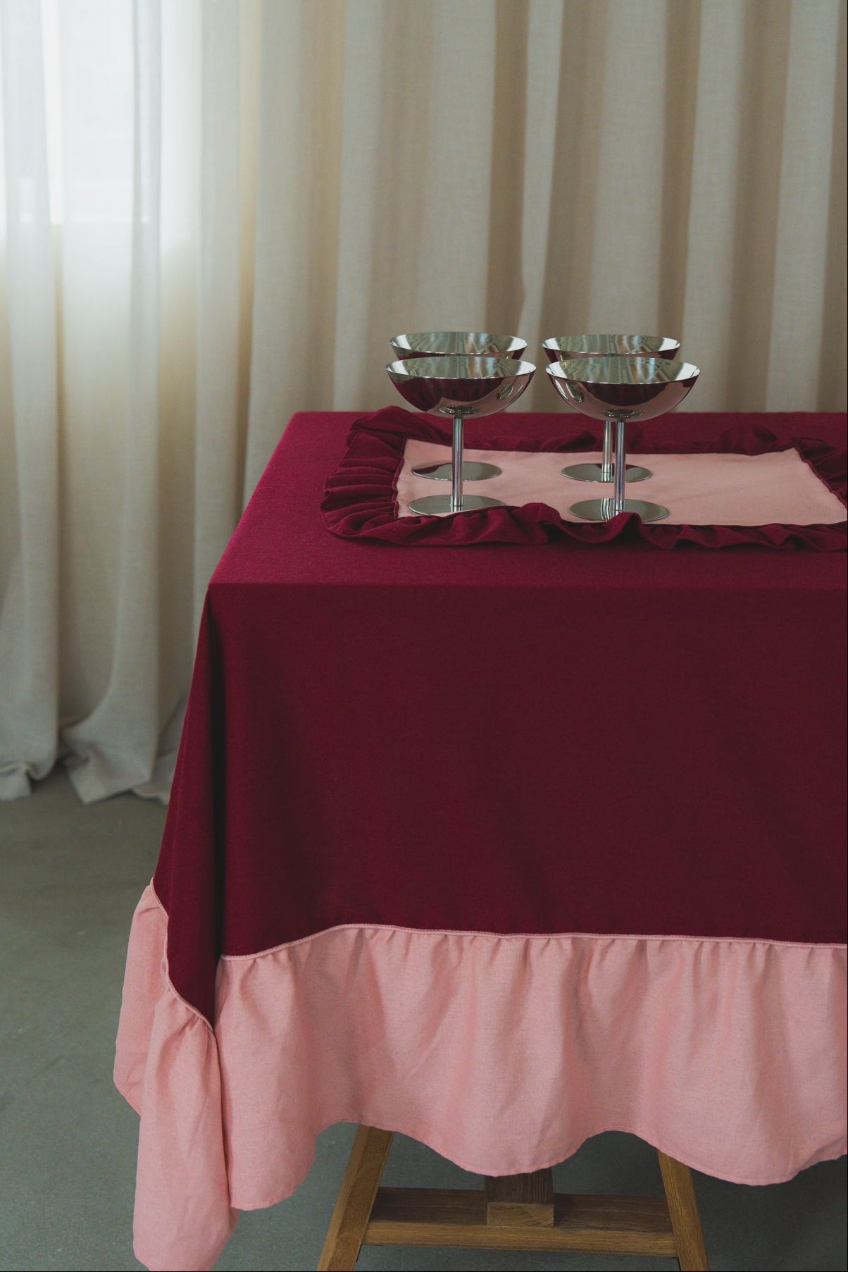 - Stop het servet niet in de droger en strijk het linnen op max. 150ºC nog voordat het volledig droog is