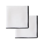 Dit paar 100% linnen servetten in natuurlijk wit, met zwarte randen, voegt een vleugje verfijning toe aan de eettafel.
