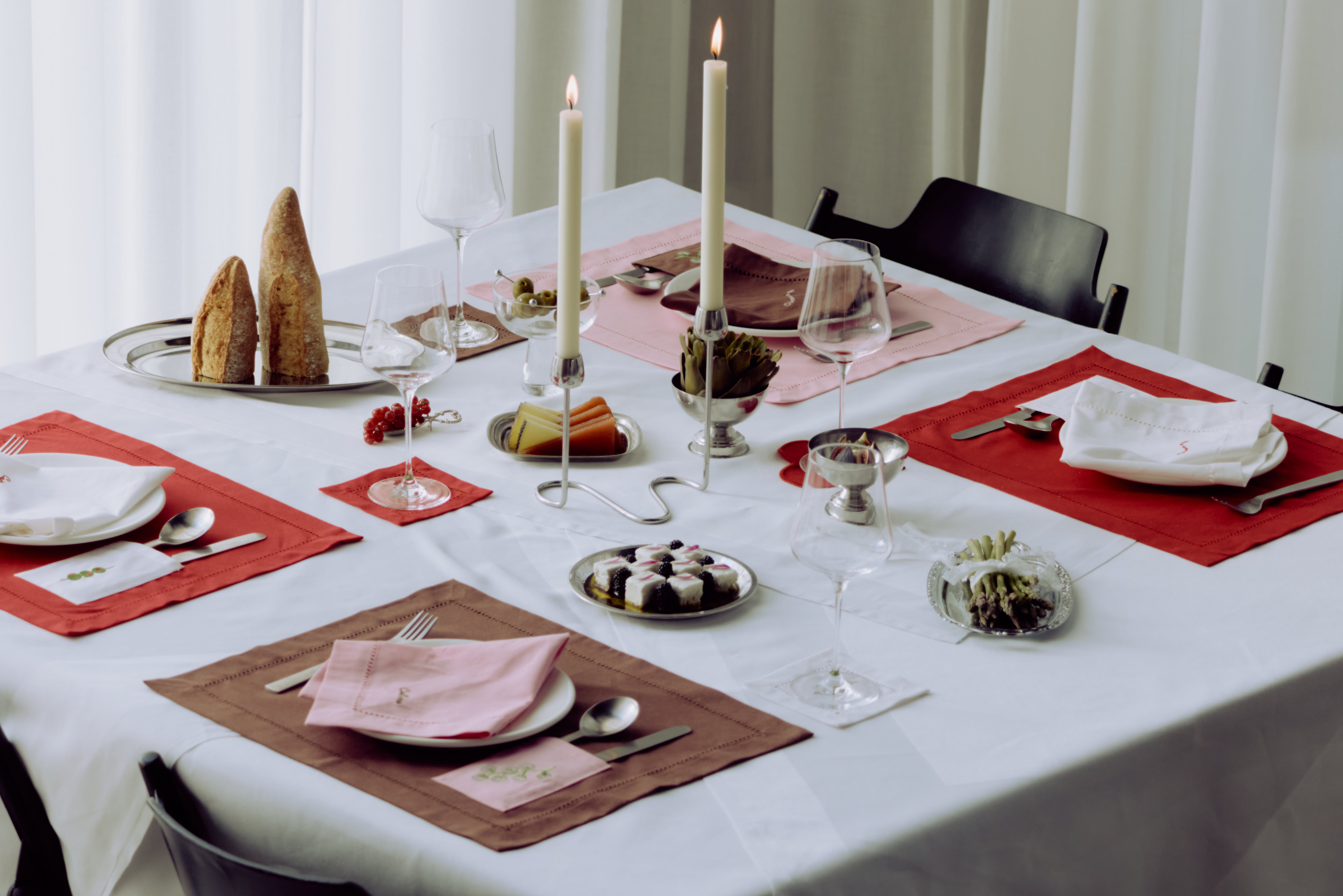 Together, we’ve created a festive capsule collection featuring table linen and a wine bag in bold colours and playful designs.