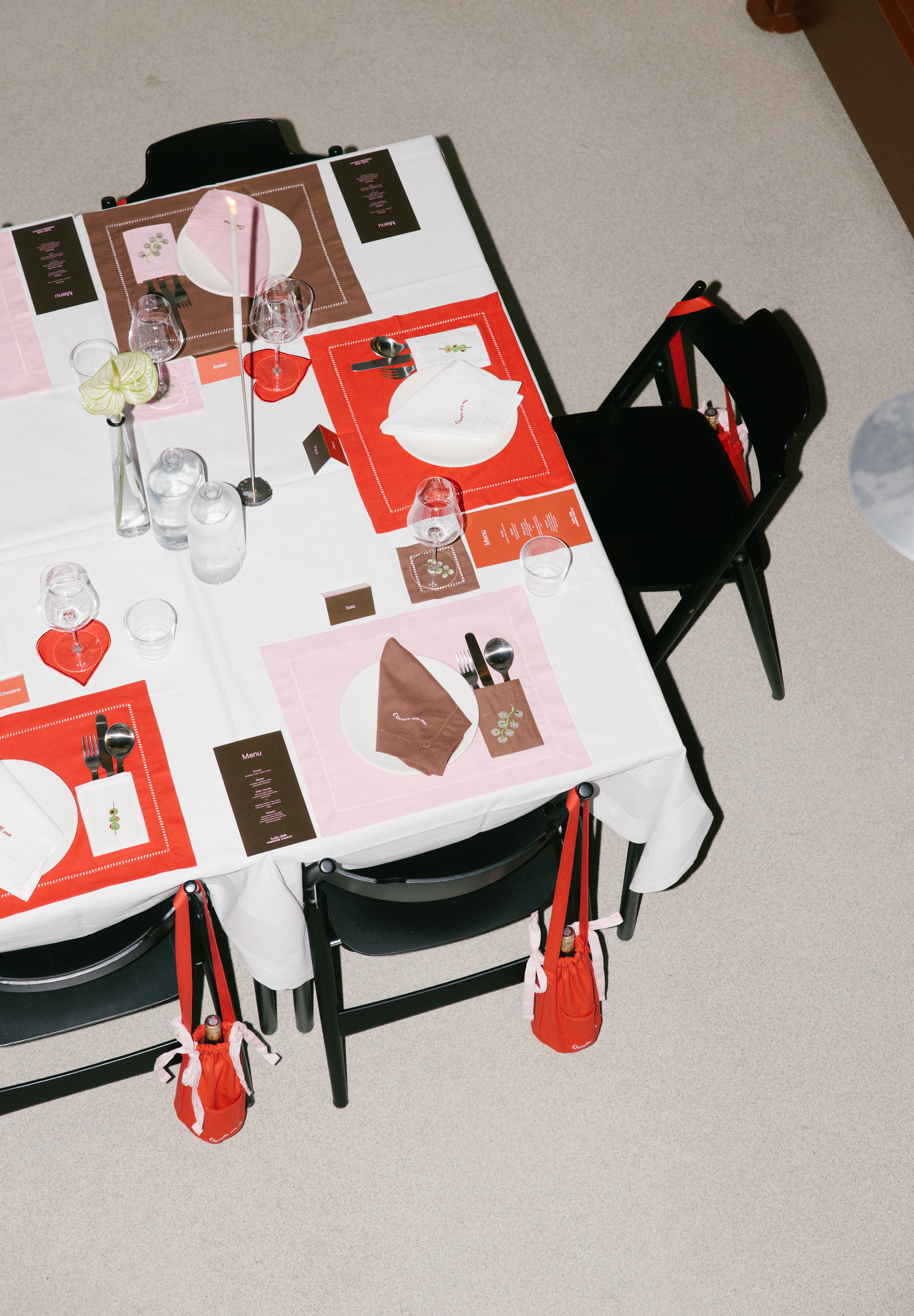 Together, we’ve created a festive capsule collection featuring table linen and a wine bag in bold colours and playful designs.