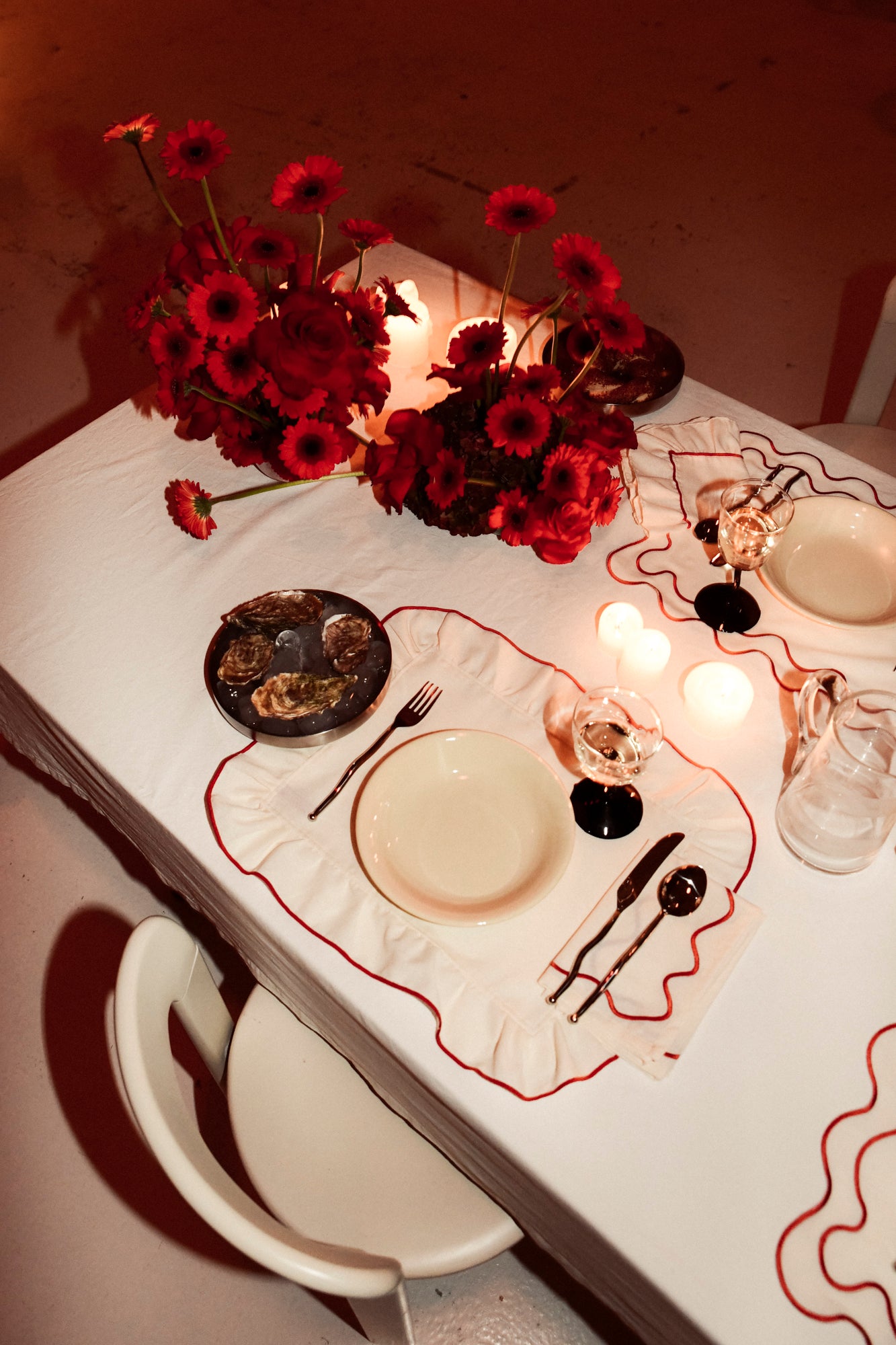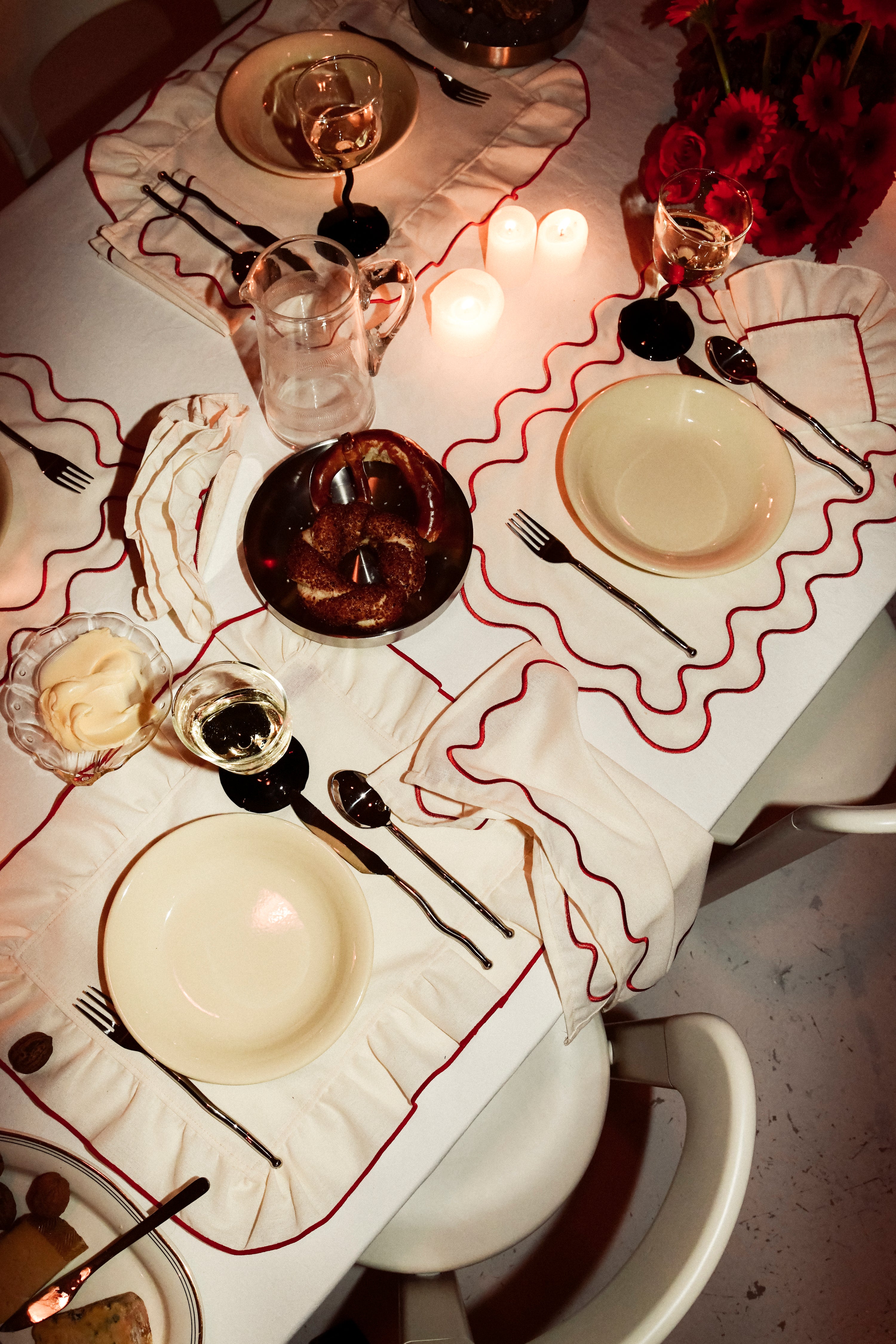 The Kulu Club x Crisp Sheets collection offers a stylish way to make your table both festive and cozy. A combination of Kulu Club's playful signature wavy designs and Crisp Sheets' refined ‘Frills’ design. Made from high-quality, eco-certified fabrics, this collection ensures a warm, elegant table setting.