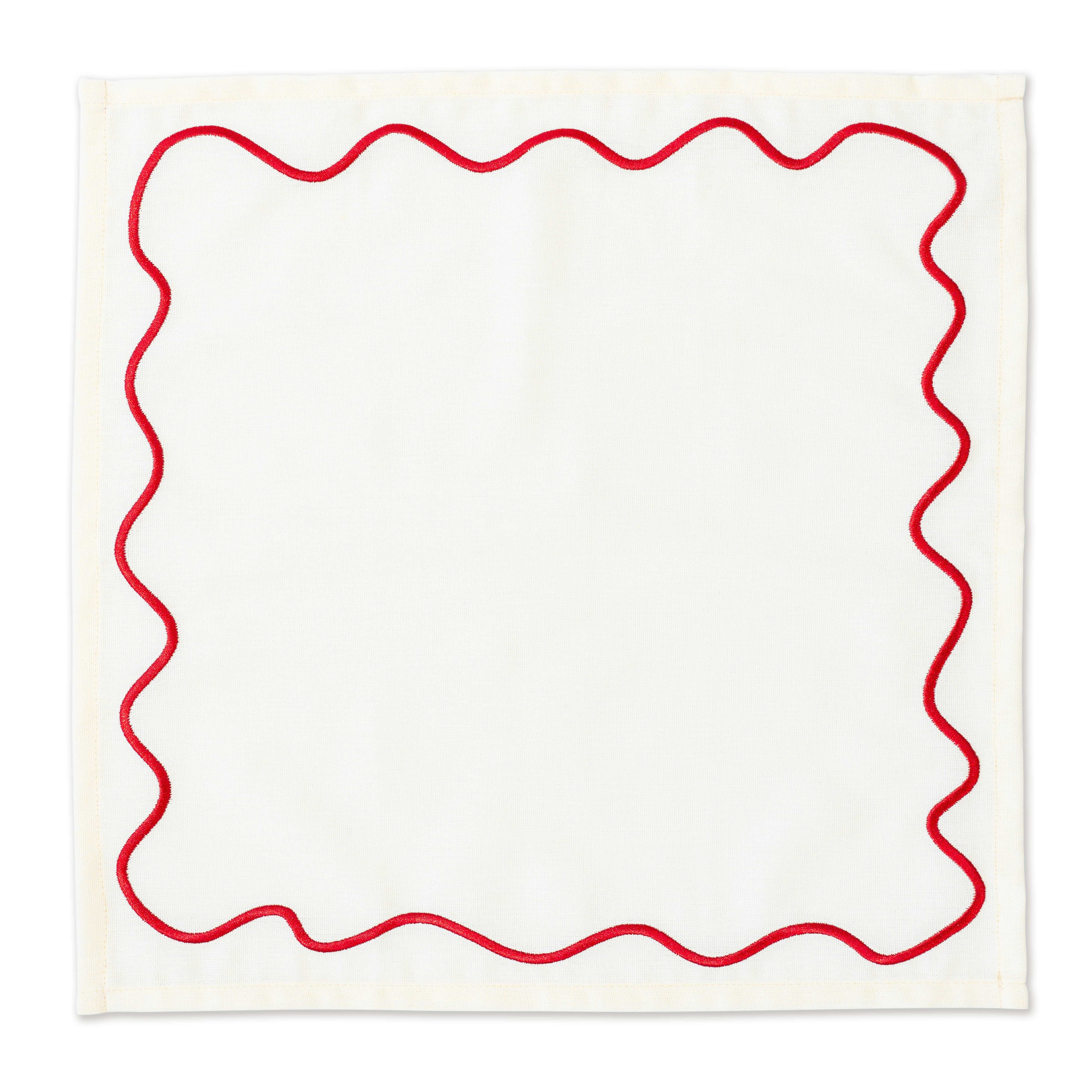 Napkins Wavy Creme/Red Linen Blend - Set of 2