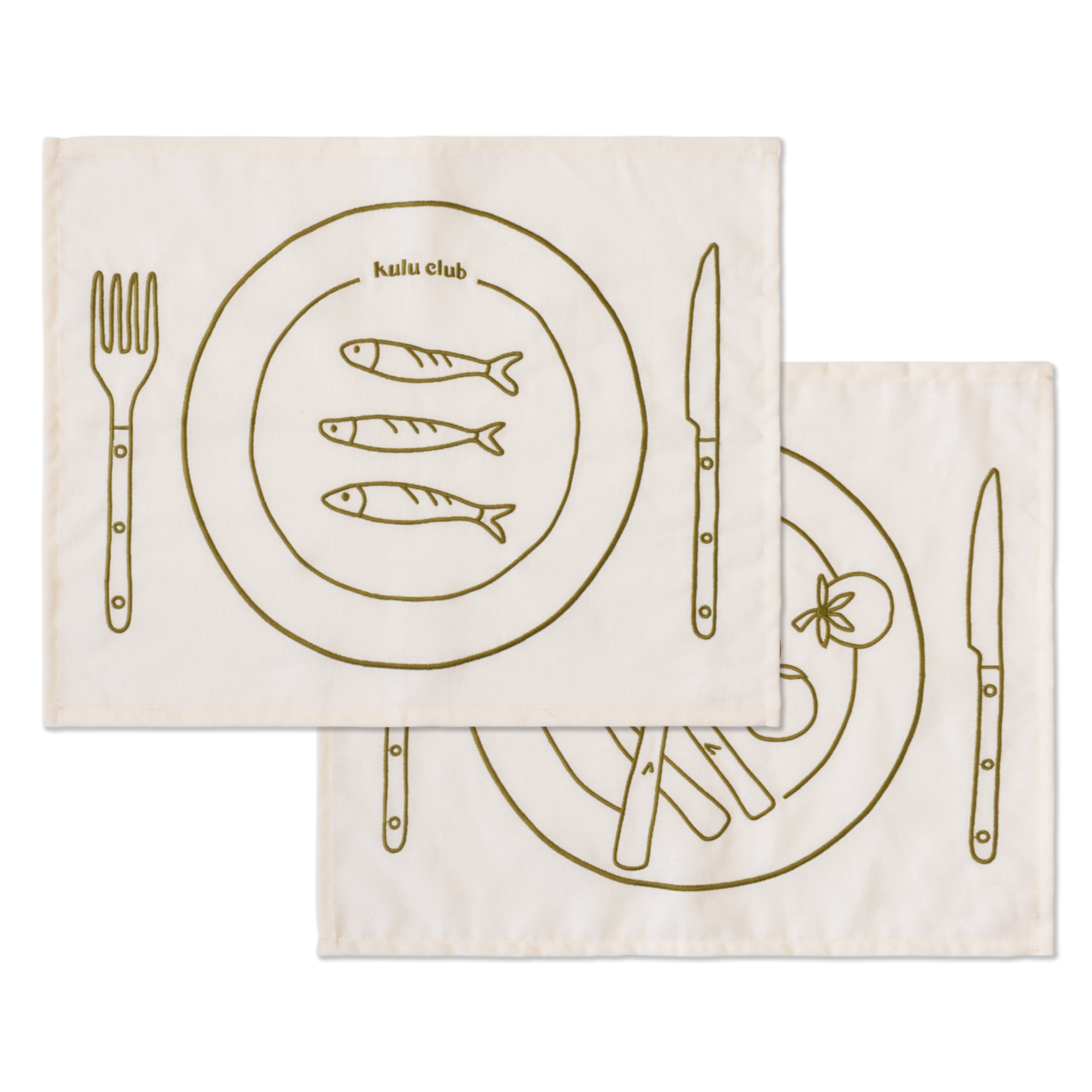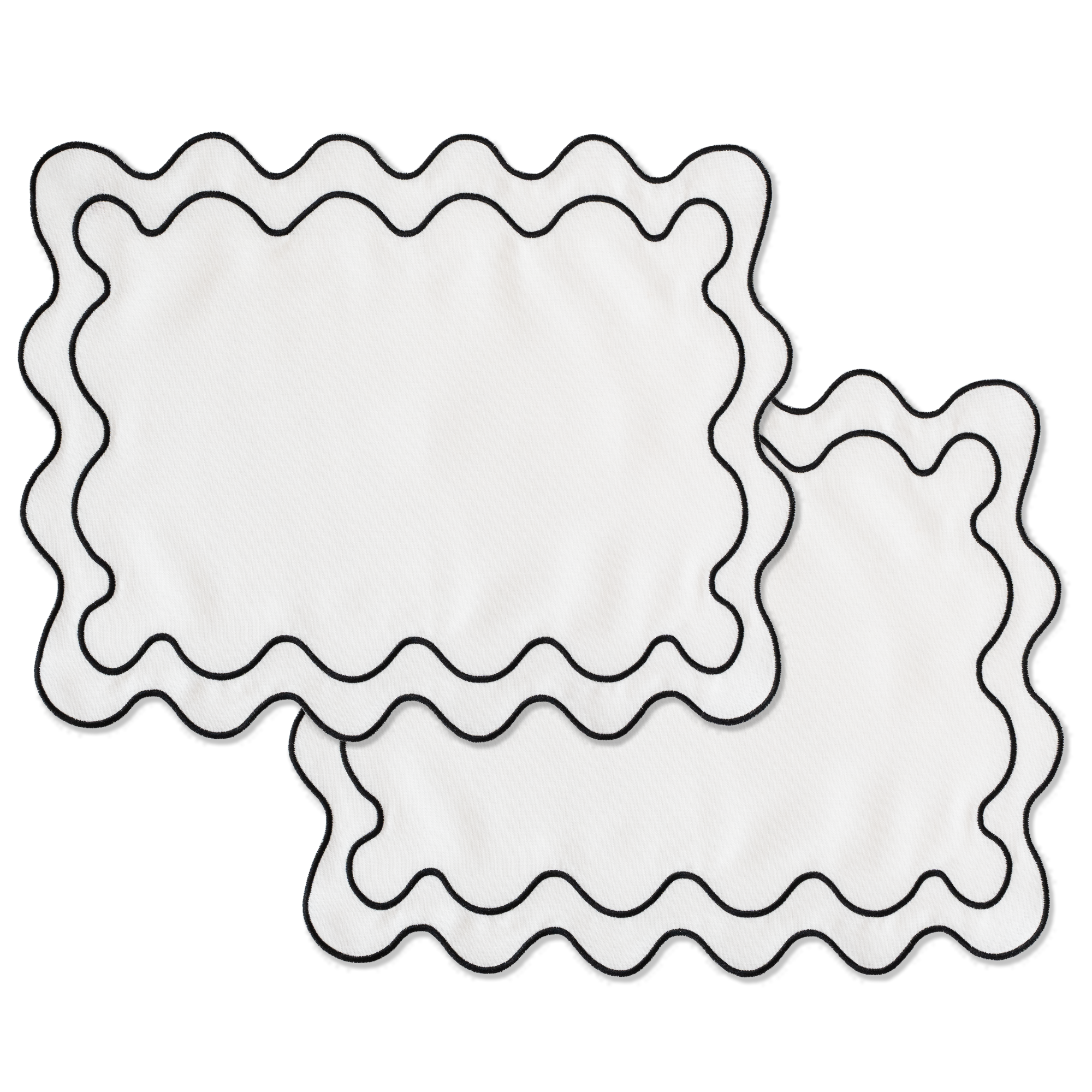 Placemats Frills Creme/Red Linen Blend - Set of 2