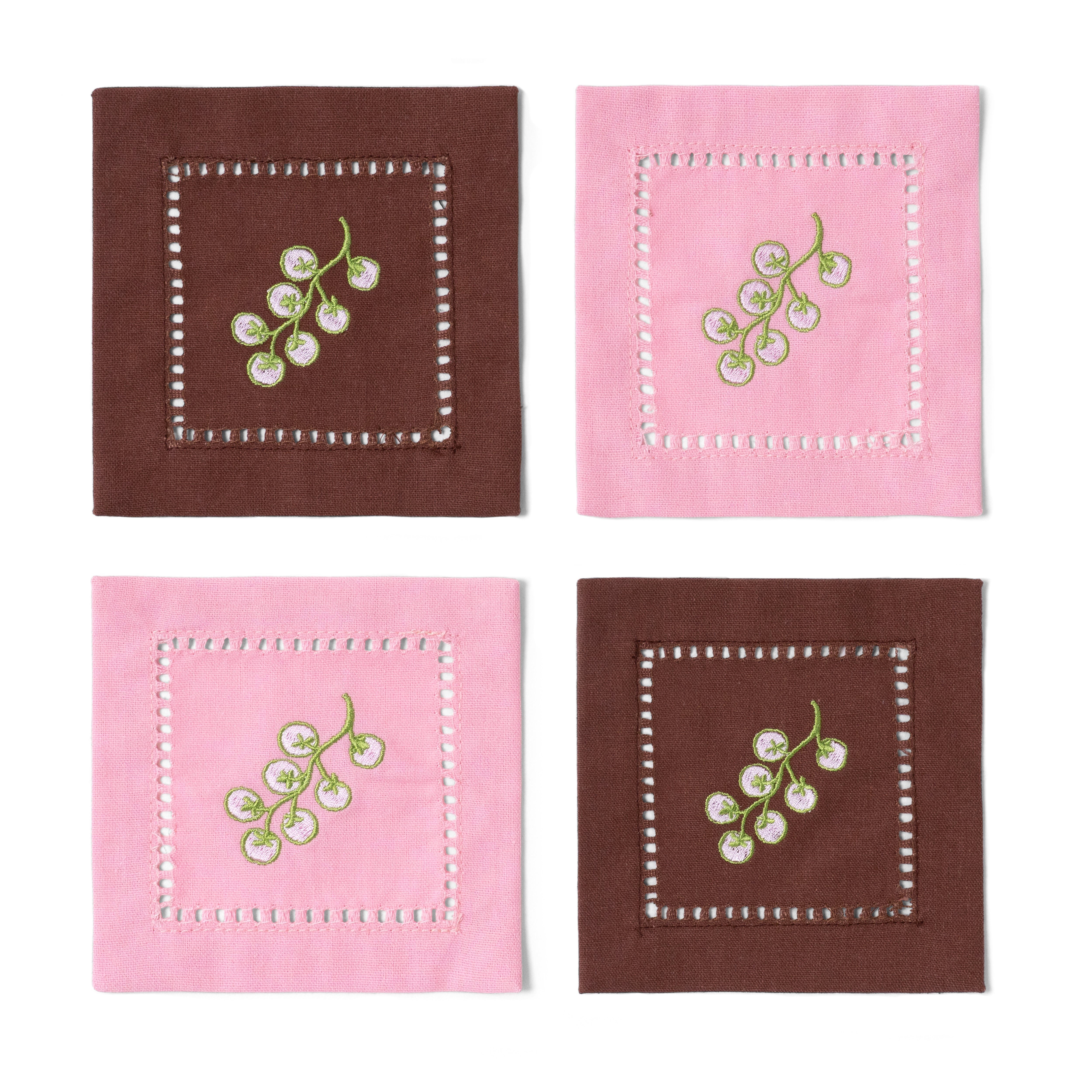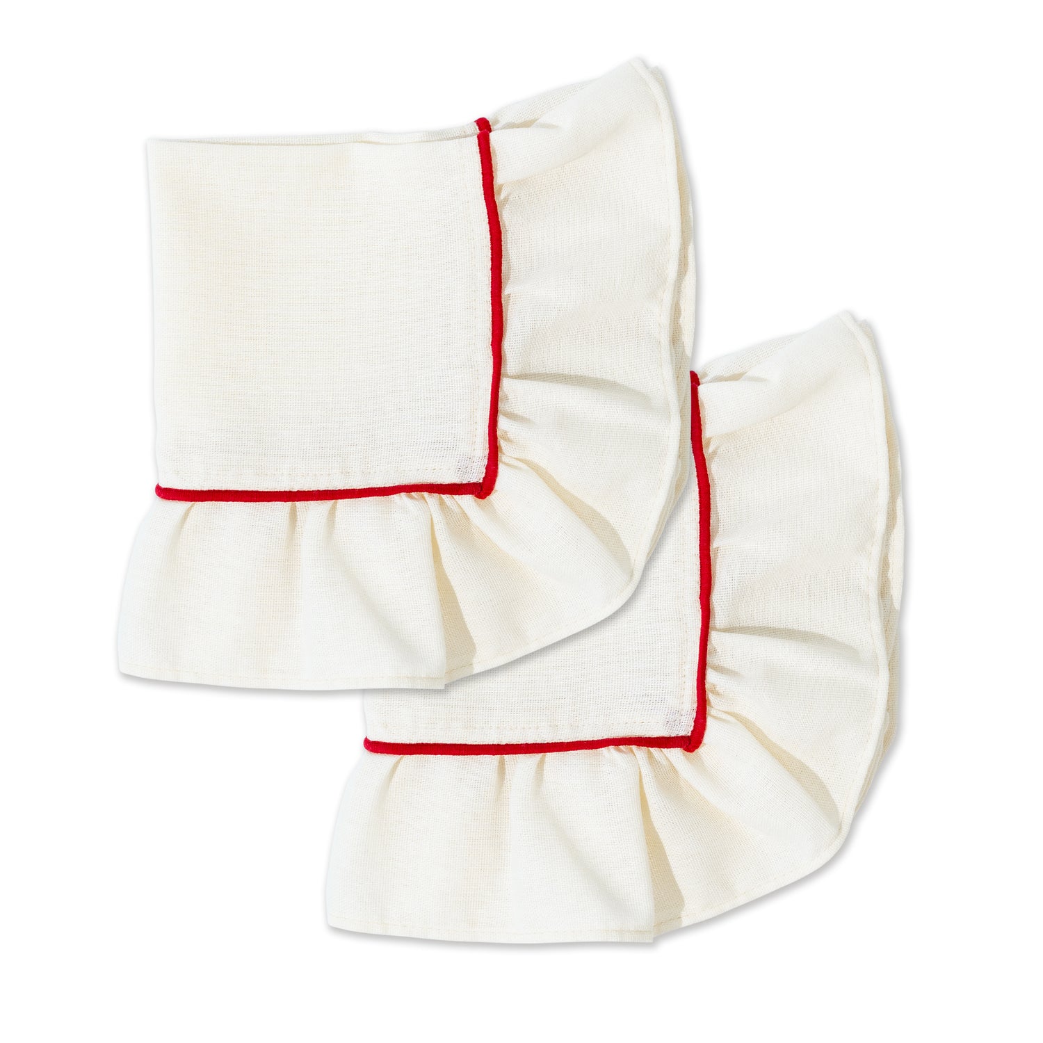Napkins Frills Cream/Red Linen Blend - Set of 2