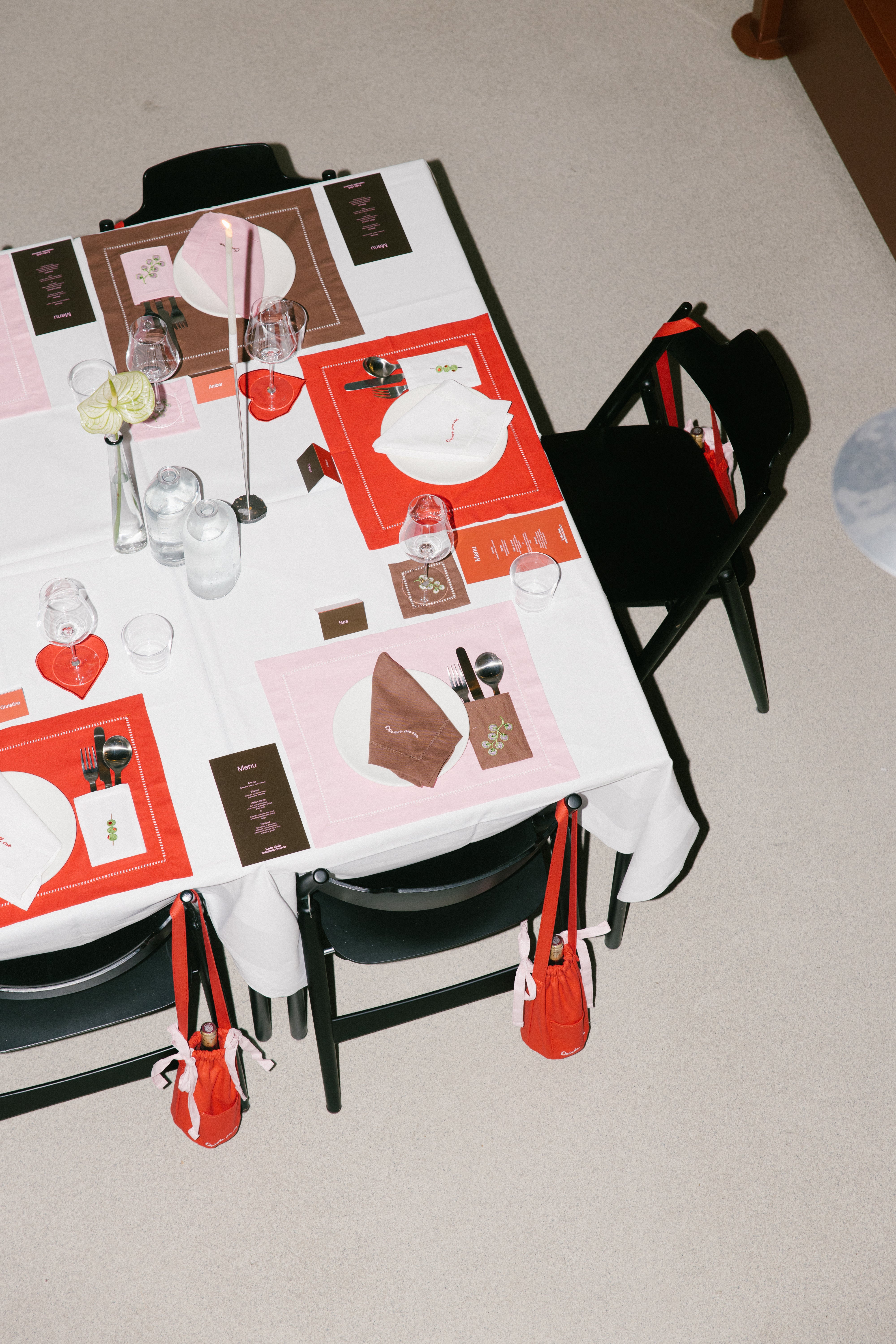 Together, we’ve created a festive capsule collection featuring table linen and a wine bag in bold colours and playful designs.