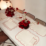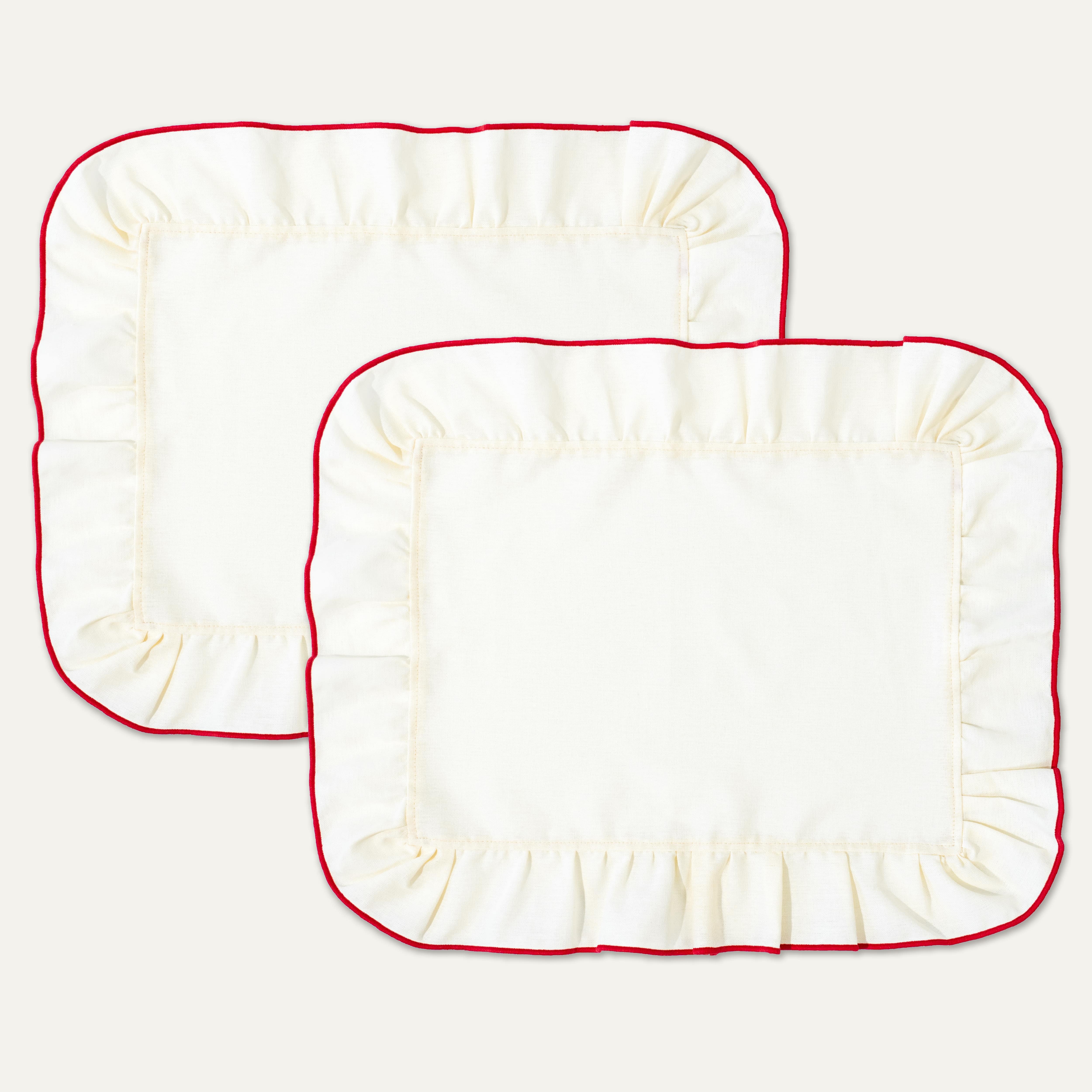 Placemats Frills Creme/Red Linen Blend - Set of 2