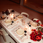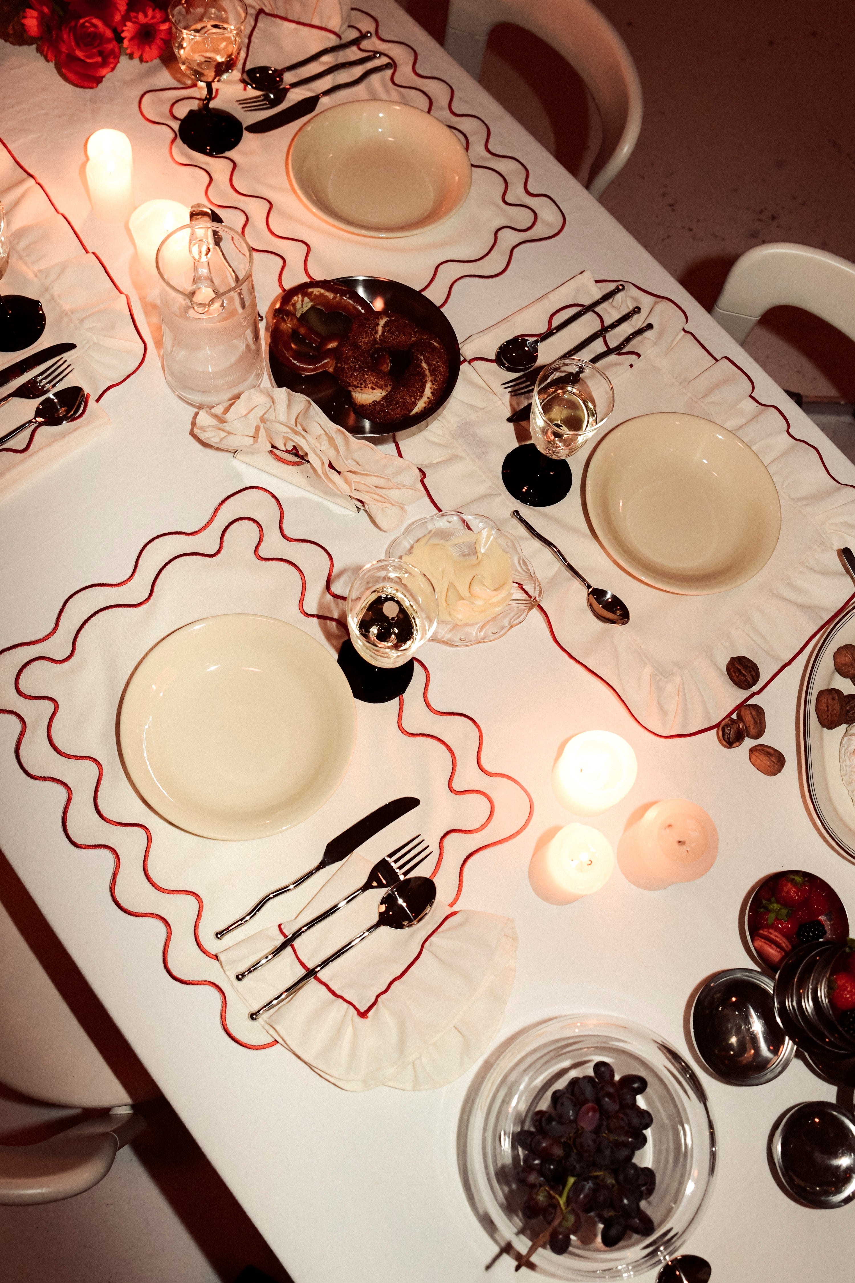 De Kulu Club x Crisp Sheets collectie biedt een stijlvolle manier om je tafel feestelijk én gezellig te maken. Een combinatie van Kulu Club's speelse signature wavy designs en het verfijnde ‘Frills’-ontwerp van Crisp Sheets. Gemaakt van hoogwaardige, eco-gecertificeerde stoffen, zorgt deze collectie voor een warme, elegante tafelsetting.