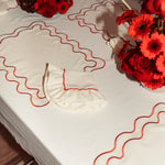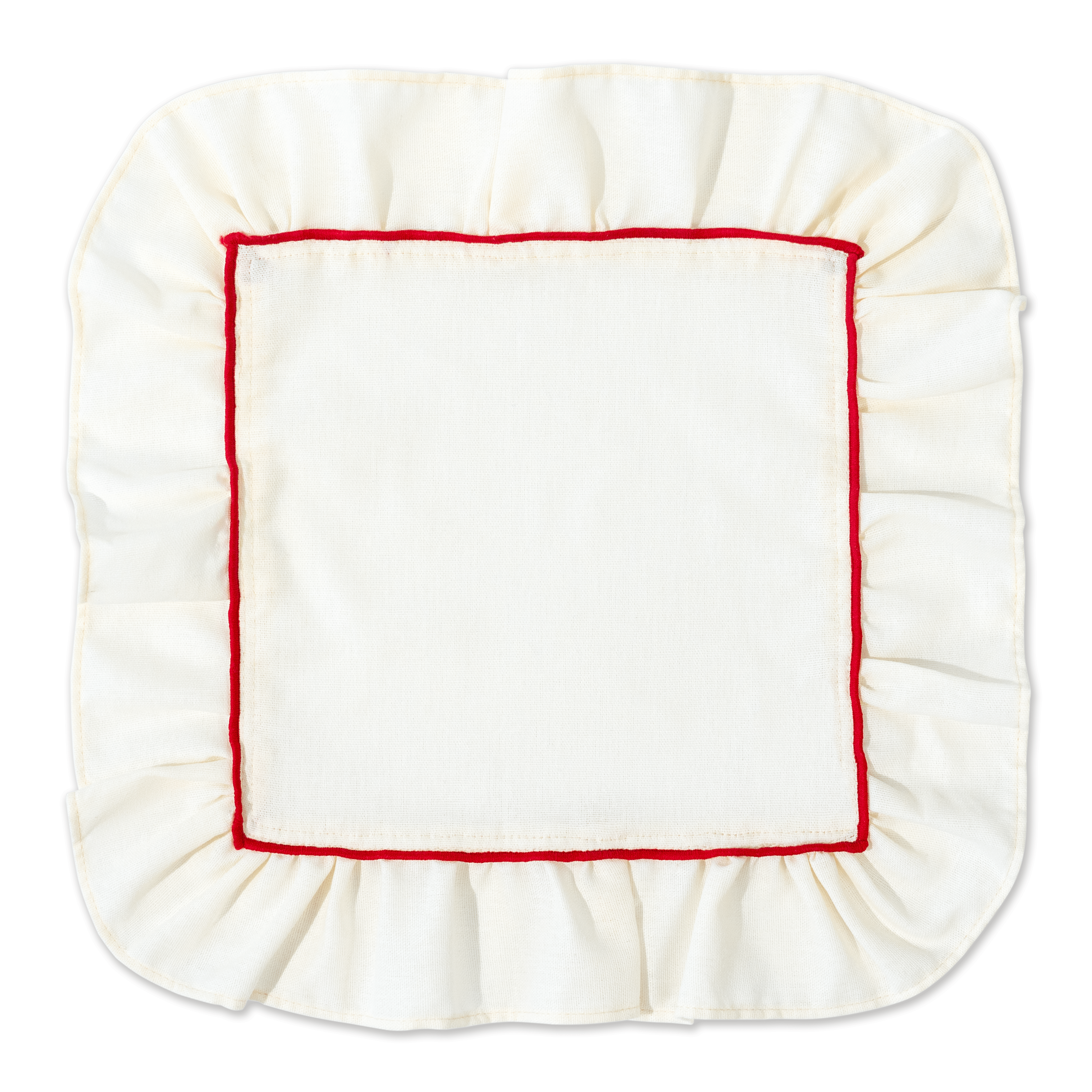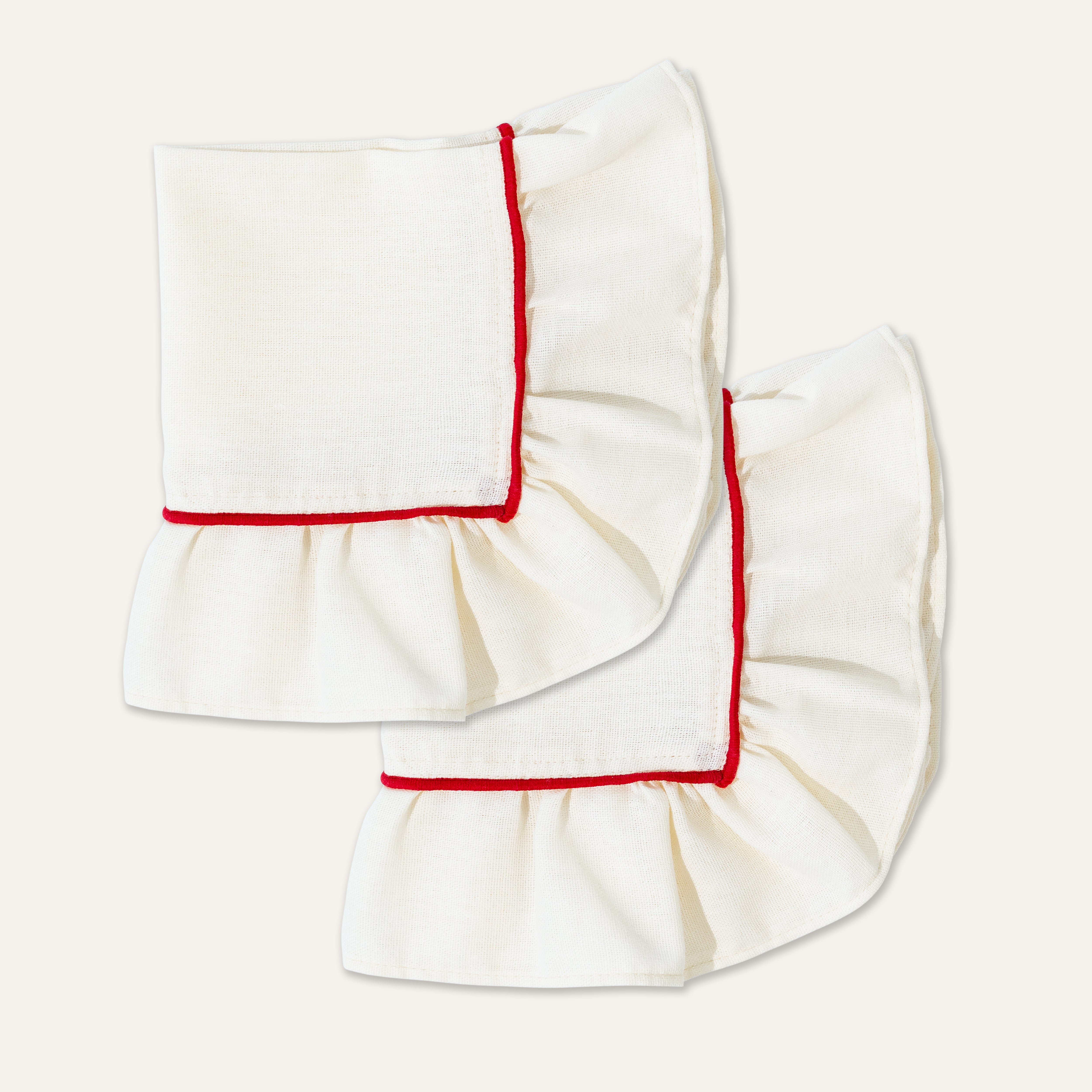 Napkins Frills Cream/Red Linen Blend - Set of 2