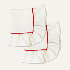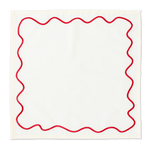 Napkins Wavy Creme/Red Linen Blend - Set of 2