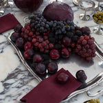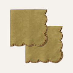 The deep tones of aubergine and olive green are perfectly matched, yet each makes a stylish statement on its own. Whether you're hosting an intimate dinner for two or throwing a grand celebration, these scalloped napkins from the Kulu Club x Moderosa collection will elevate any table setting.