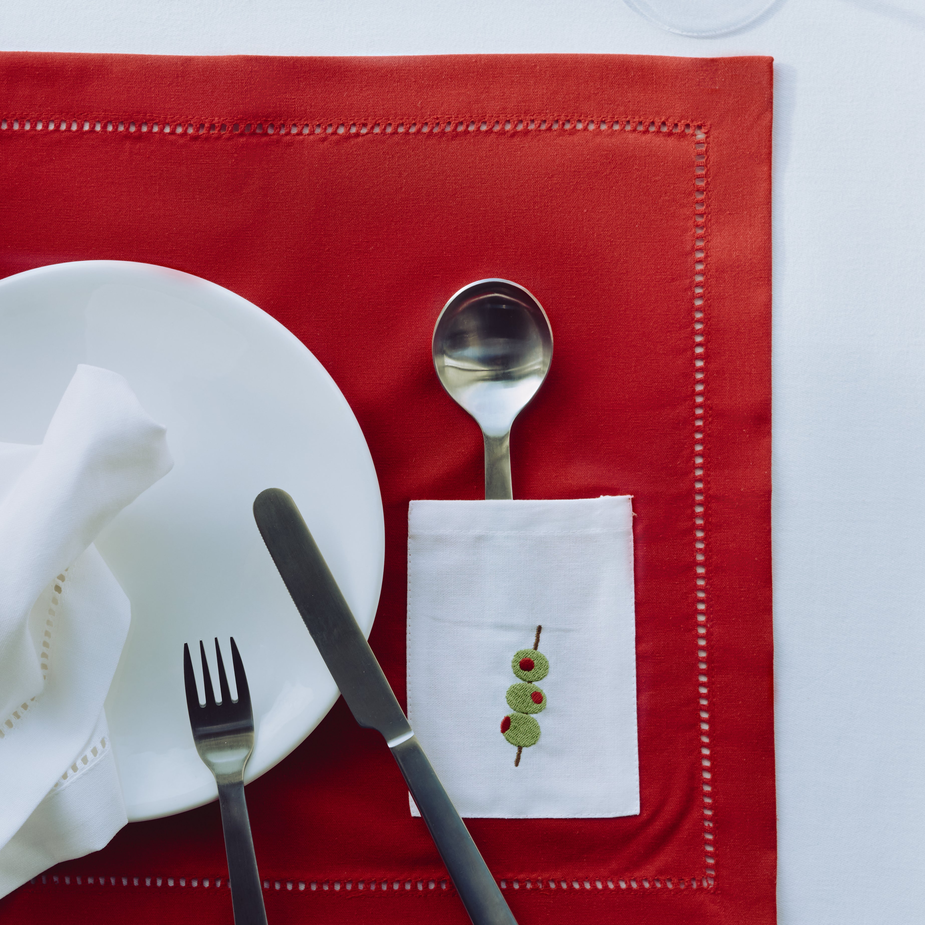 Placemats Frills Creme/Red Linen Blend - Set of 2