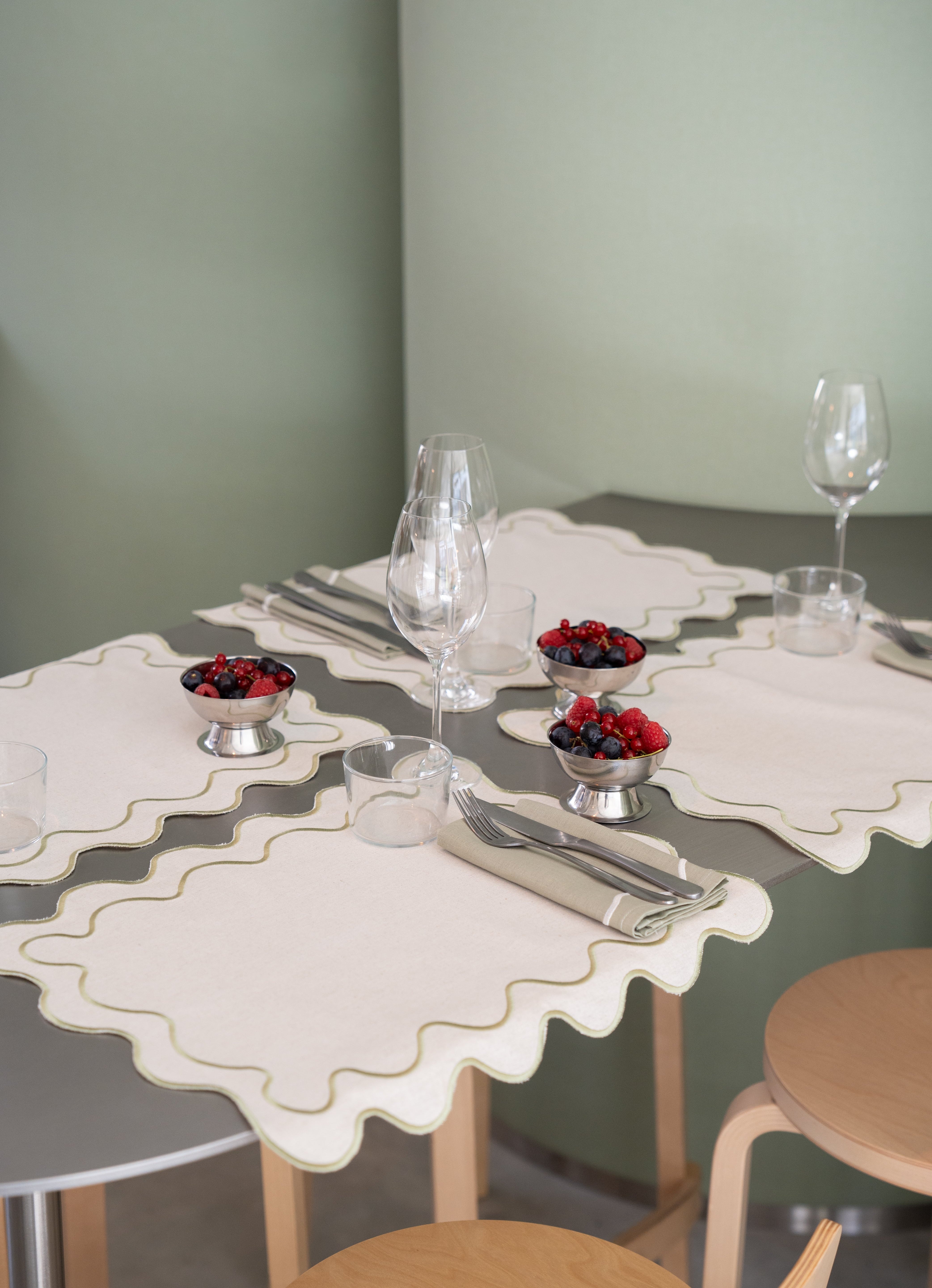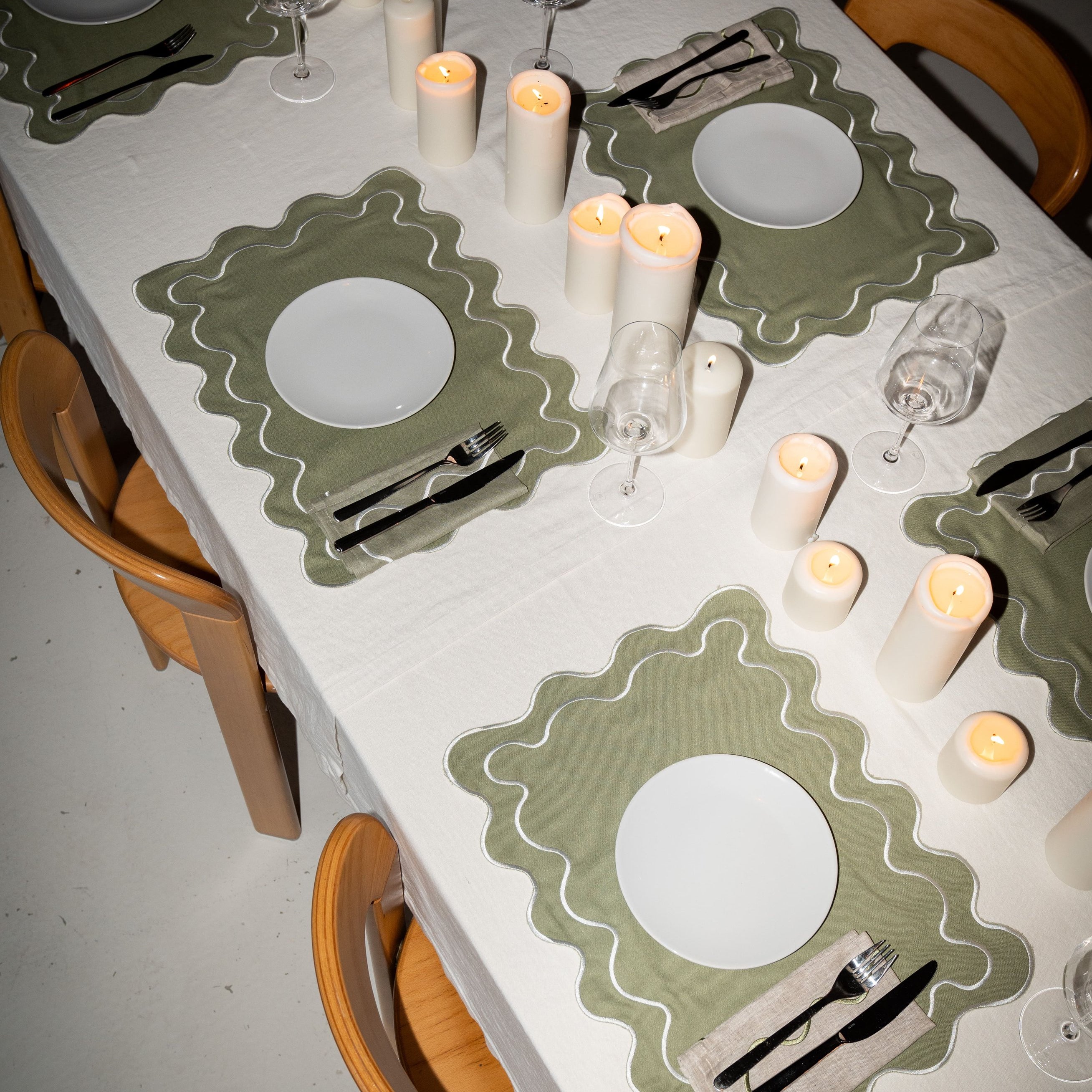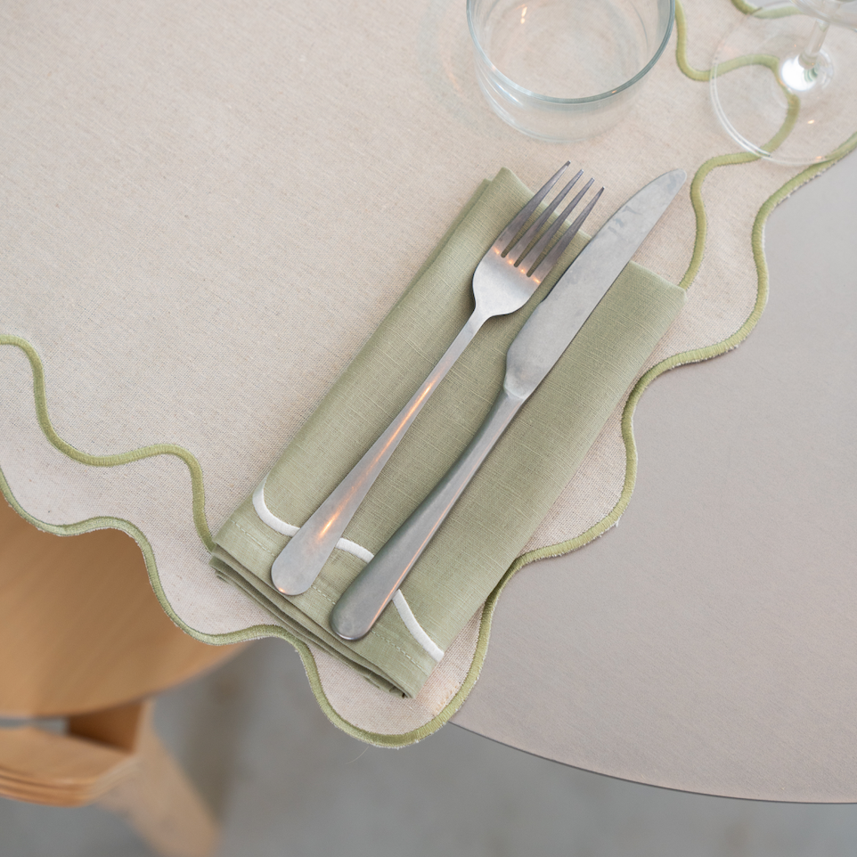 The wavy Kulu Club signature patterns also felt like a perfect match, especially since our wedding invitations had a similar wavy design. I have to give Isi some credit here too; he helped me make sure everything felt cohesive, from the colors of the napkins to the placemats. Together, we created something that felt meaningful, not just for us but for others to enjoy as well.