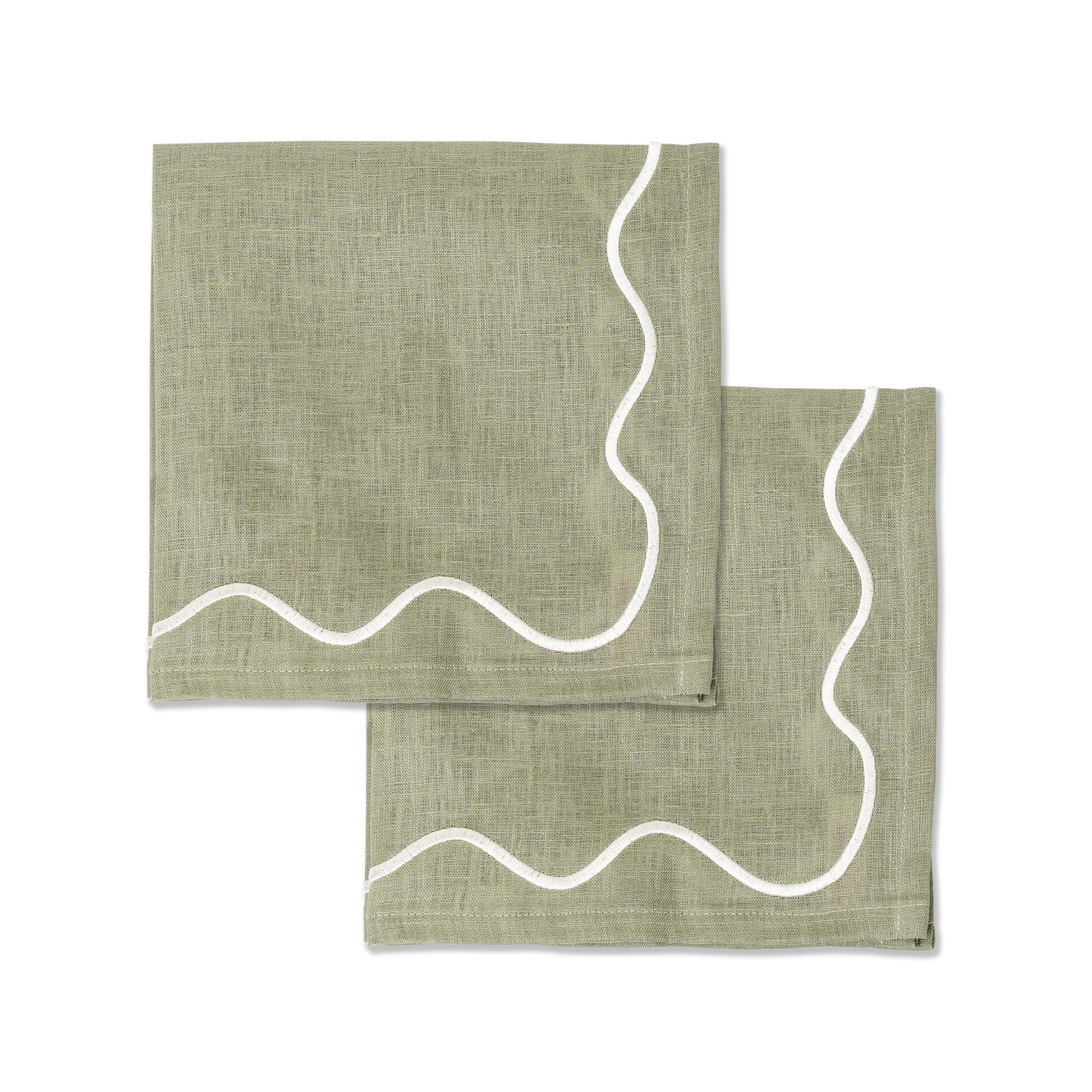 100% linnen servetten set (2) scallop olijfgroen
