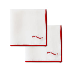 Dit paar 100% linnen servetten in de kleur rood, met de tekst "mon amour" geborduurd in dieprood op beide uiteinden, brengt een gedurfde en speelse uitstraling naar de eettafel.