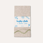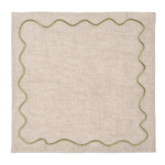 Dit paar 100% linnen servetten van de Kulu Club x Benthe Liem collectie zijn beige met speels wavy borduurwerk in contrasterend saliegroen. Deze servetten zijn vervaardigd van hoogwaardig eco-linnen en dus niet alleen stijlvol en luxueus, maar ook duurzaam met een klein ecologisch voetprint! Dus goed voor mens, milieu en dier.