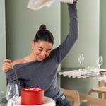 - Stop het servet niet in de droger en strijk het linnen op max. 150ºC nog voordat het volledig droog is