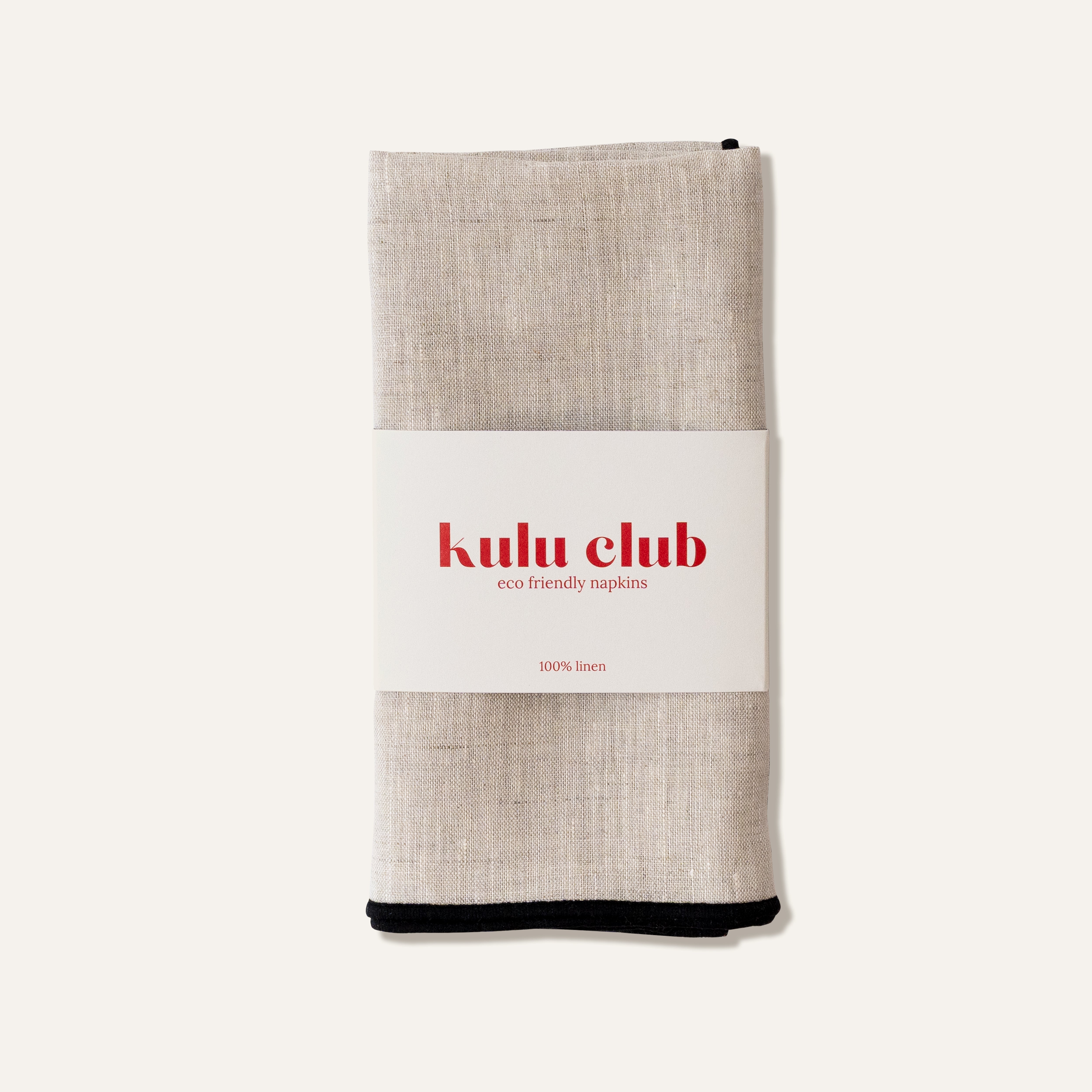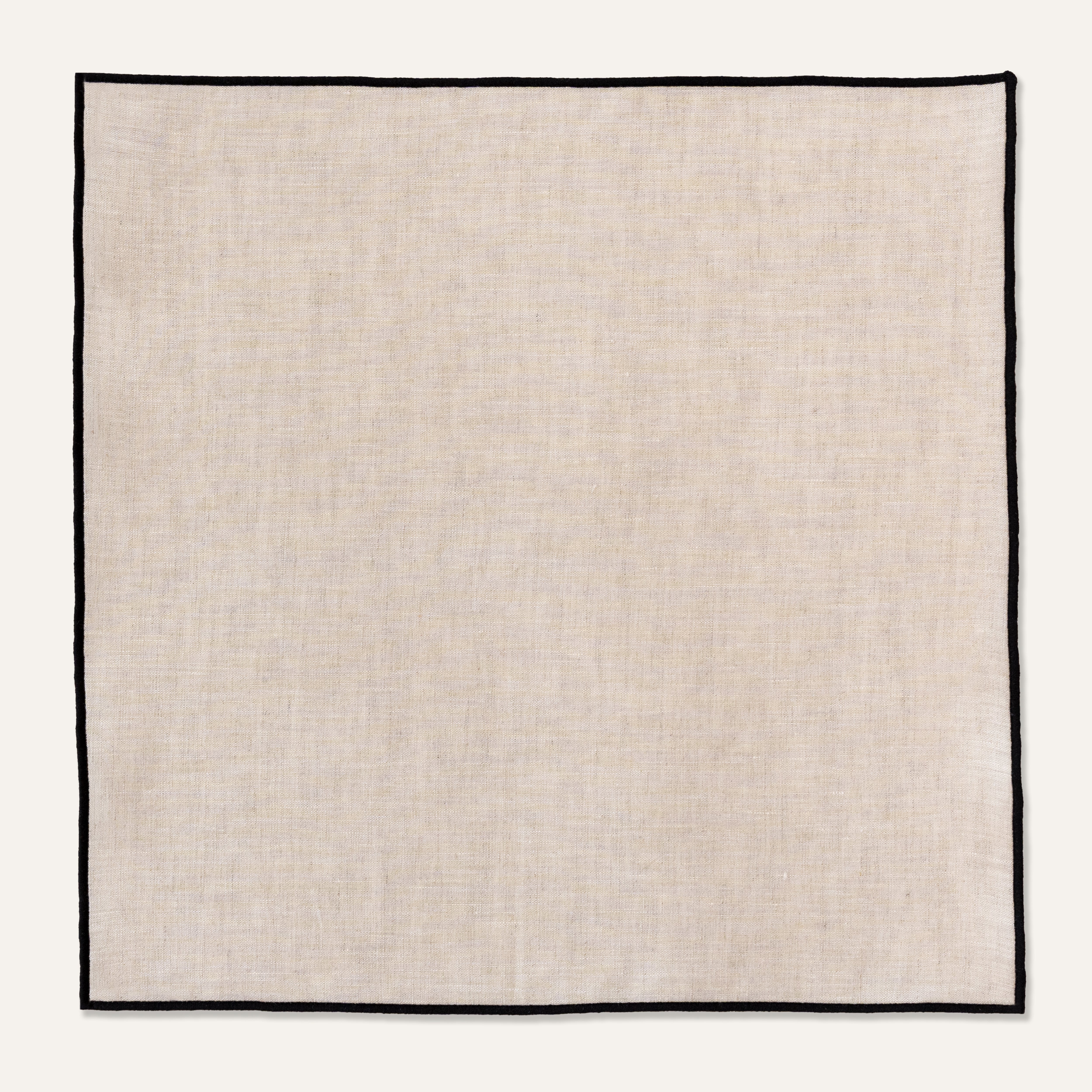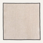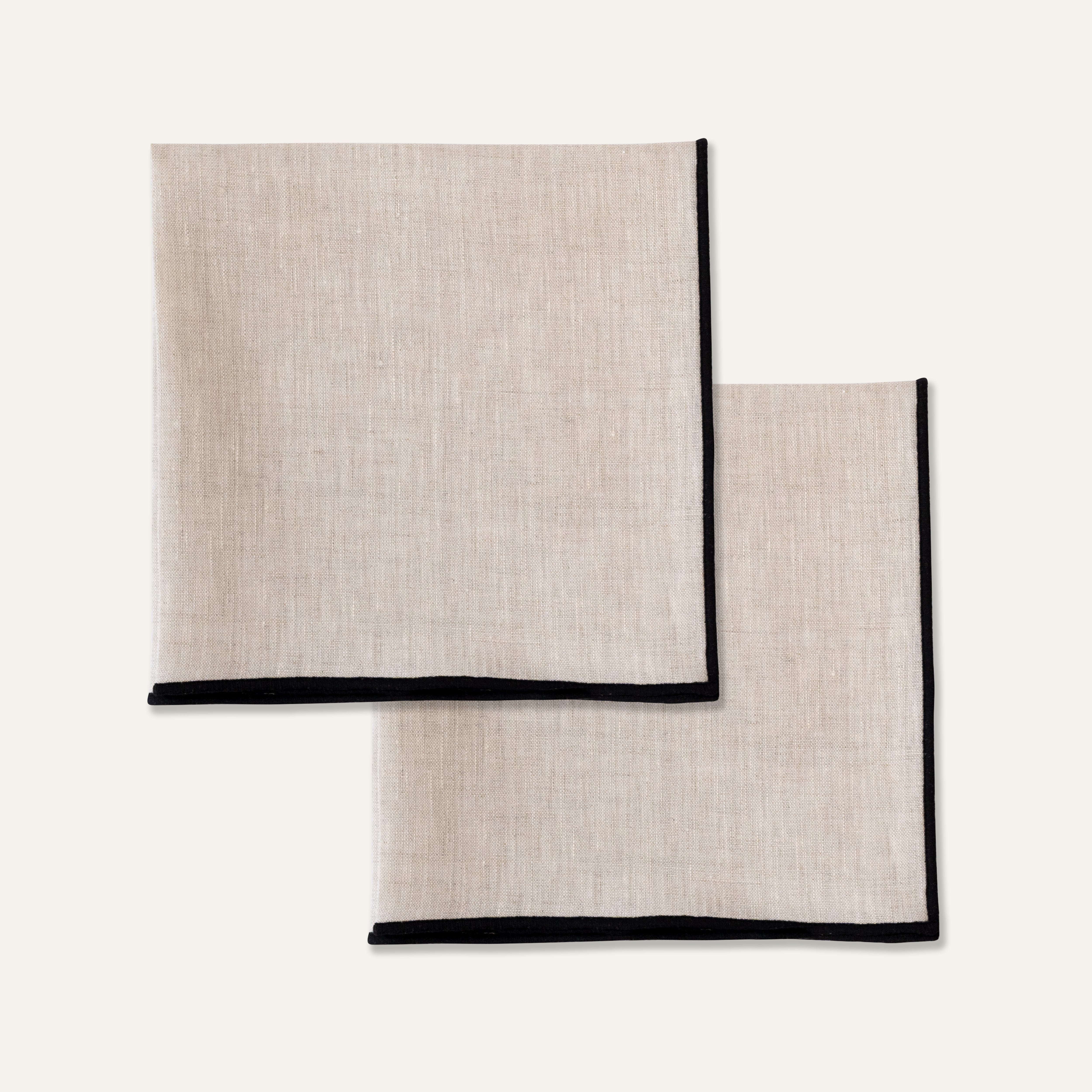 Dit paar 100% linnen servetten in elegant beige, met contrasterende zwarte randen, voegt een vleugje verfijning toe aan de eettafel. Deze servetten zijn tijdloos en stijlvol vanwege hun natuurlijke beige kleur en eenvoudige zwarte randen.