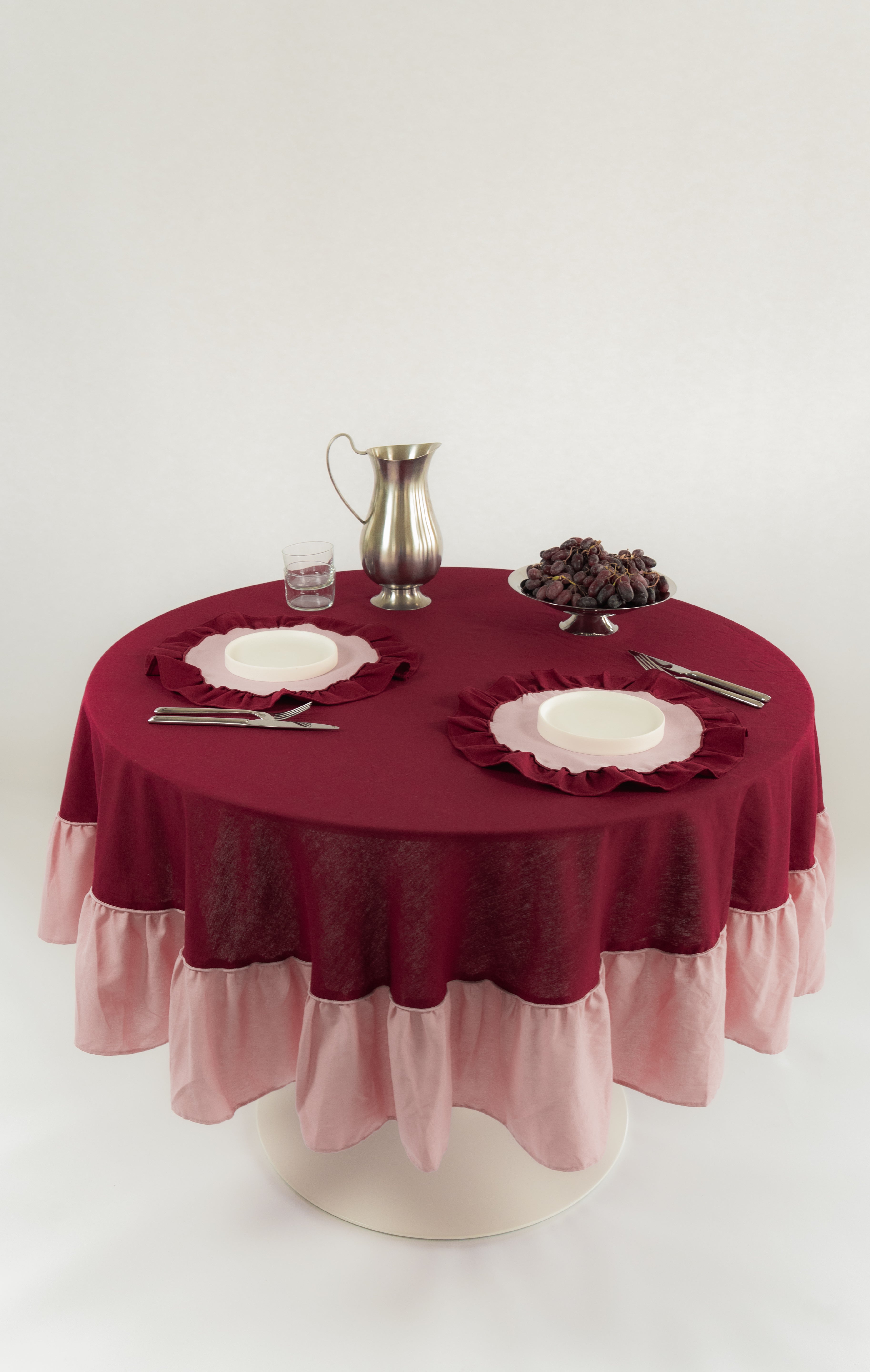 Placemats set (2) rond ruffle cherry/roze